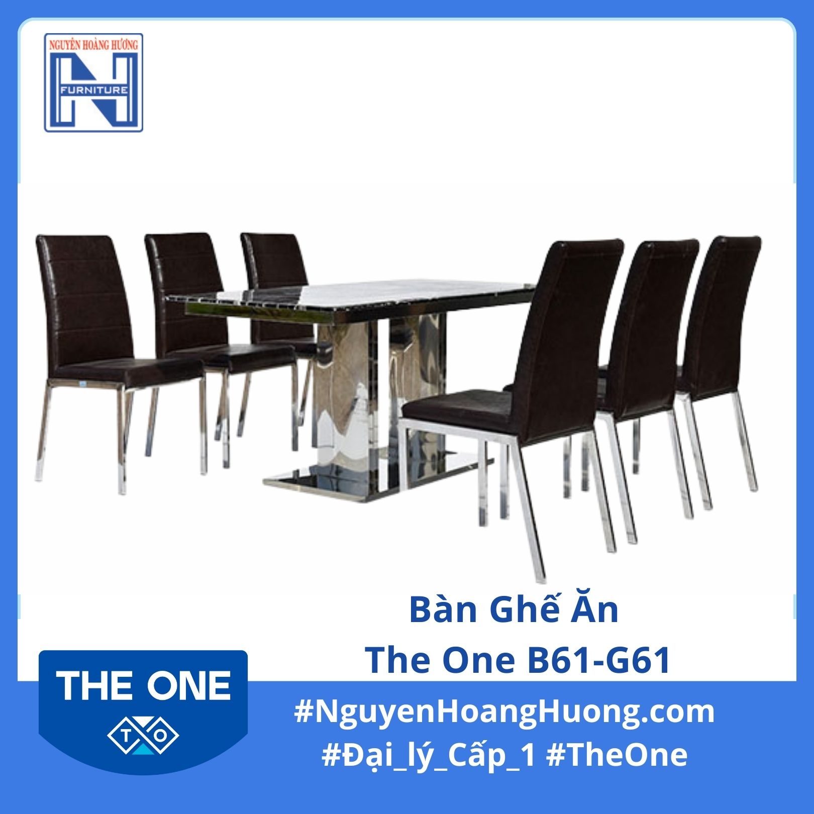 - Sản phẩm bàn ghế ăn The One B61-G61 có thiết kế sang trọng, hiện đại, thích hợp cho các không gian phòng ăn gia đình, nhà hàng, quán ăn,…