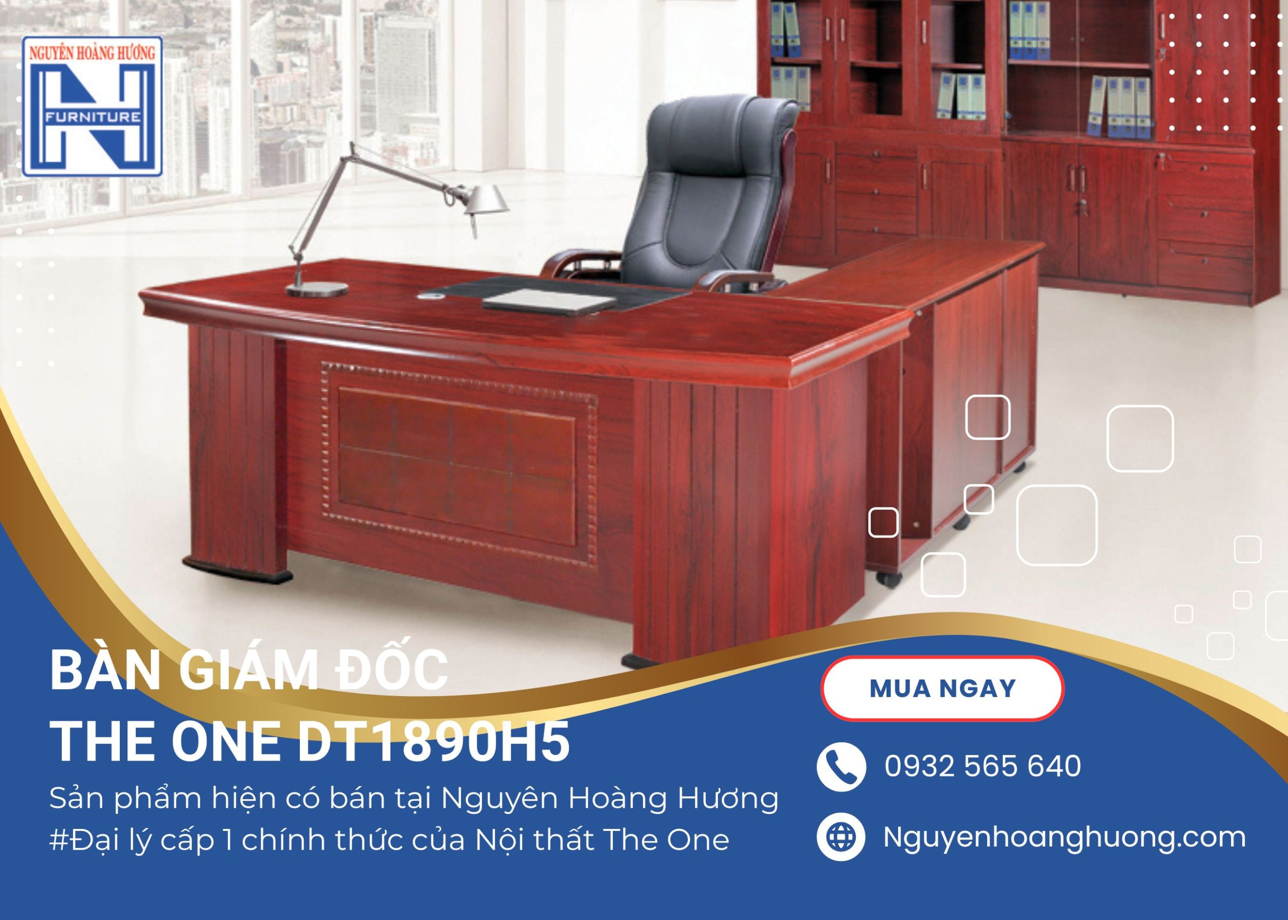 - Bàn Giám Đốc The One DT1890H5 sử dụng chất liệu gỗ công nghiệp sơn phủ PU cao cấp.