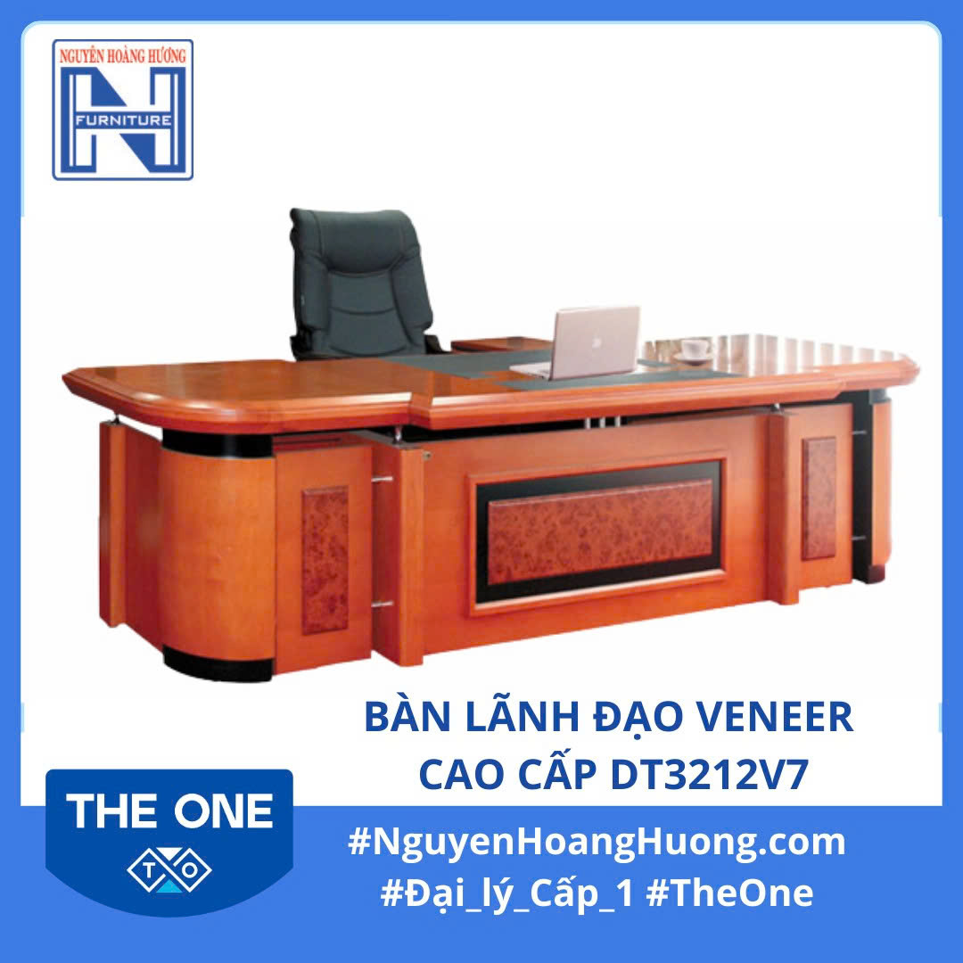 Bàn Lãnh Đạo Veneer Cao Cấp DT3212V7 được làm từ gỗ Veneer sang trọng, bền đẹp theo thời gian.