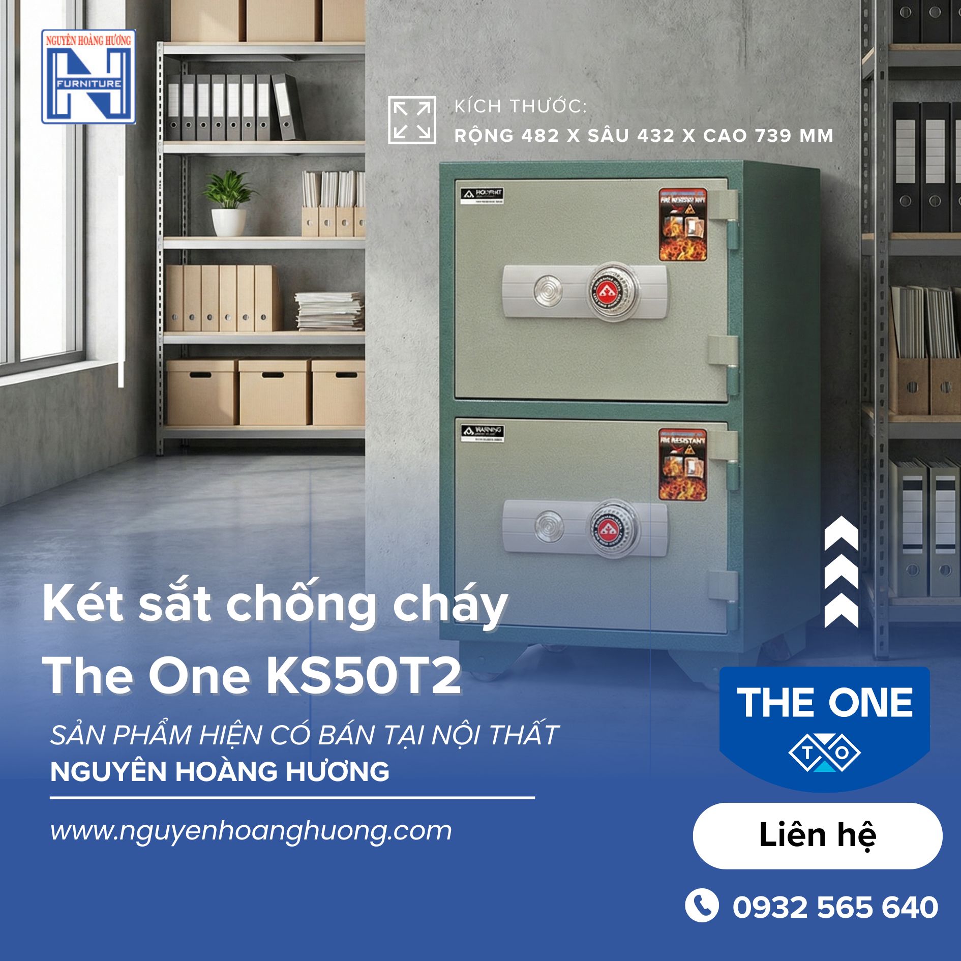 Trong kinh doanh, sự an toàn của hồ sơ và tài sản luôn là ưu tiên hàng đầu. Với dòng két sắt The One KS50T2, bạn hoàn toàn có thể yên tâm tập trung vào công việc, Sản phẩm được phân phối chính hãng tại Nội Thất Nguyên Hoàng Hương